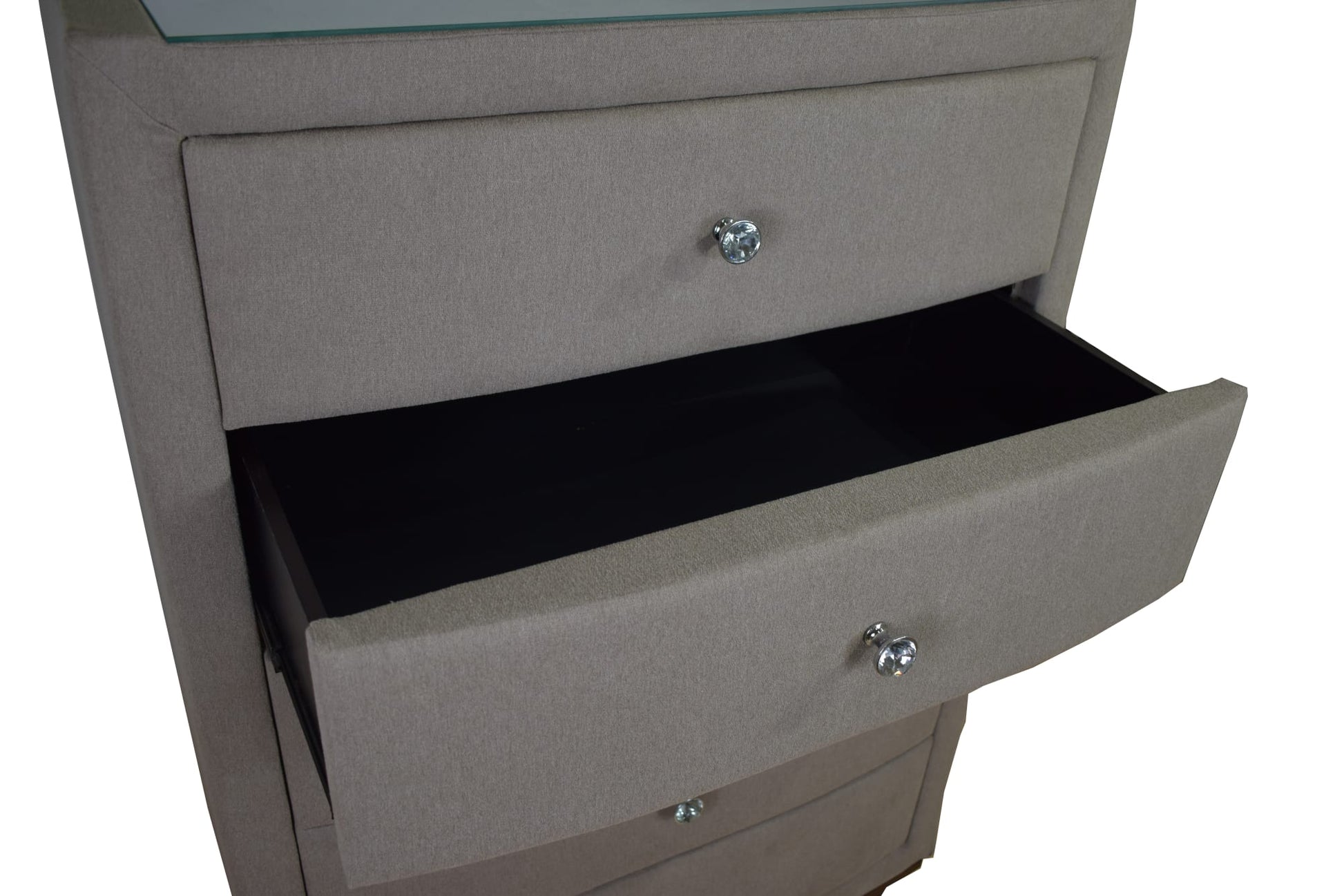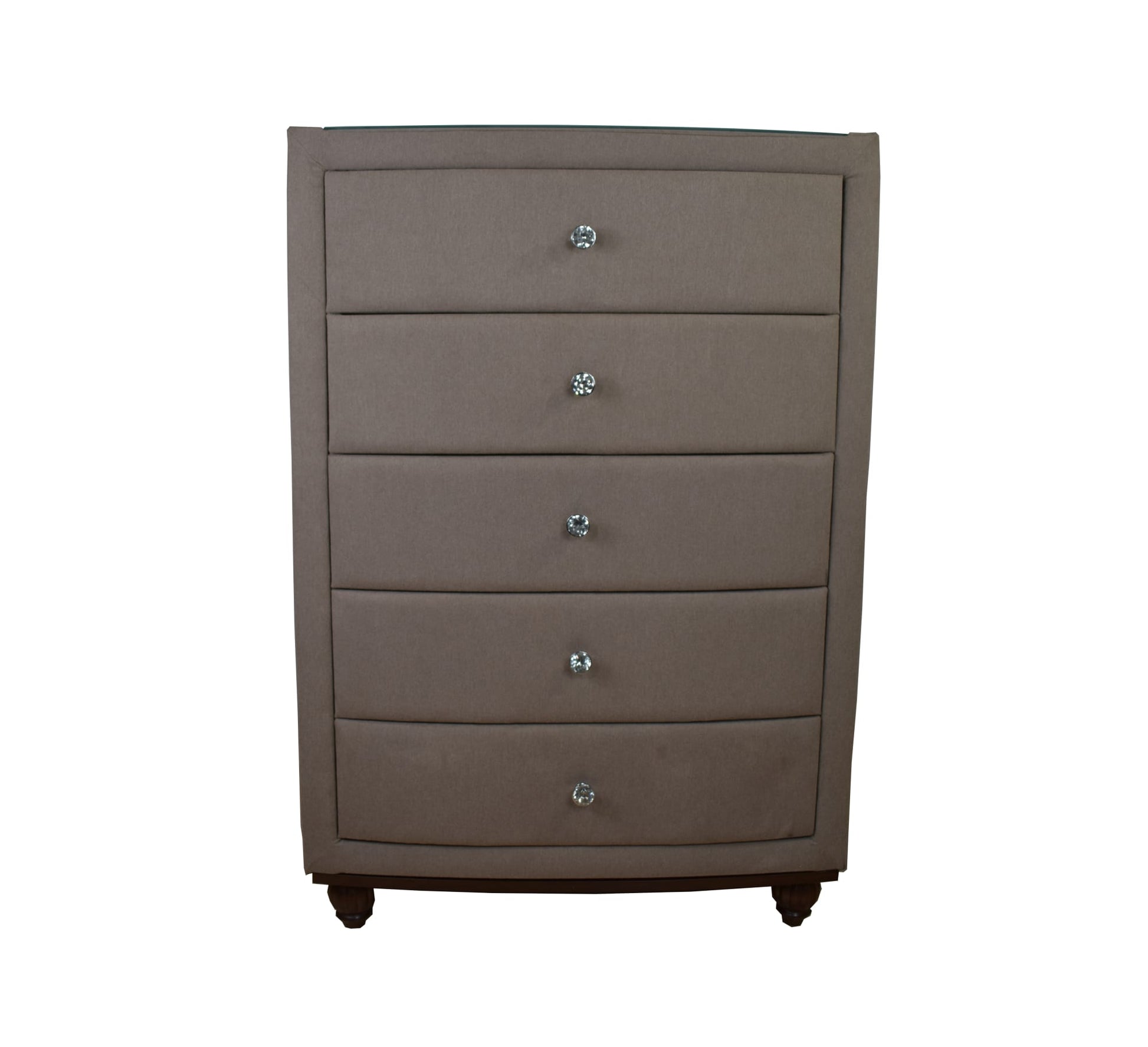 Experience the captivating Angie chest, swathed in mink velvet fabric, radiating luxury and sophistication. Boasting five roomy drawers, it offers storage with style. The crowning glory is the dazzling crystal handles, adding a touch of Hollywood glamour. Lifted on precision-carved wooden feet, it's a masterpiece of craftsmanship. The synergy of these wooden feet and the base creates a striking two-tone contrast, blending classic and contemporary design seamlessly. The Angie chest transcends furniture, elevating your room's ambiance, uniting style and functionality.