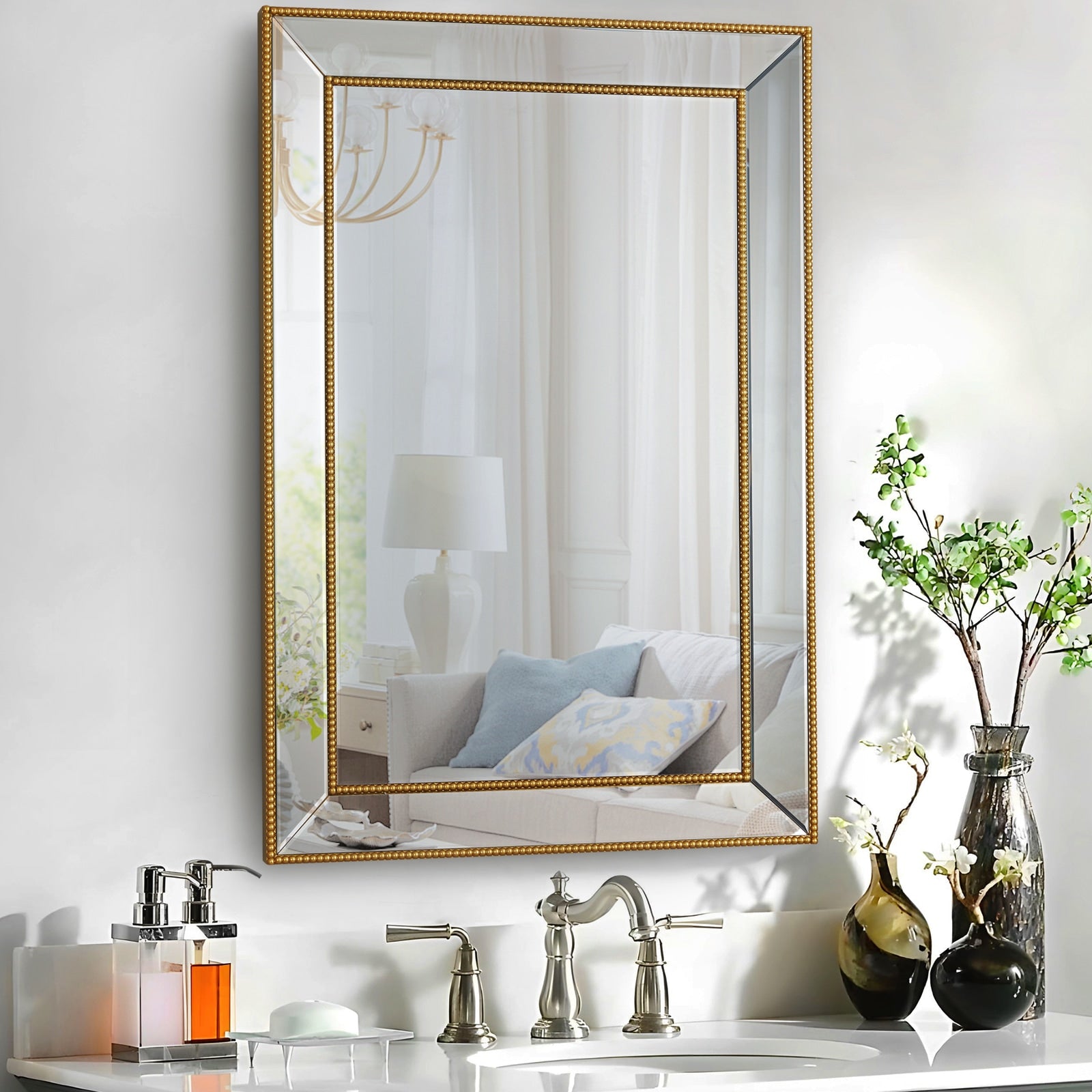 Introducing the Juniper, a classic rectangular mirror that brings an air of graceful simplicity to any area. This brilliant 120x80cm mirror features an intricate gold beaded perimeter and can be easily hung in almost any location.