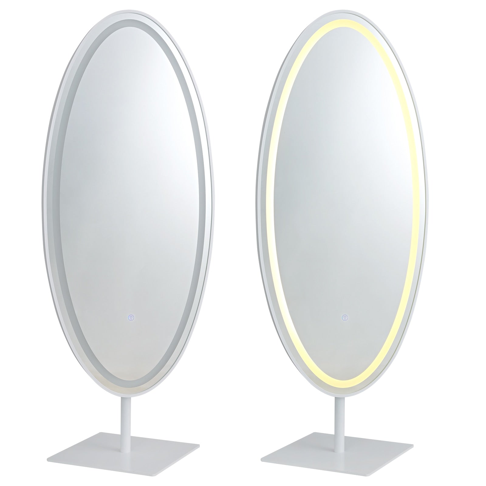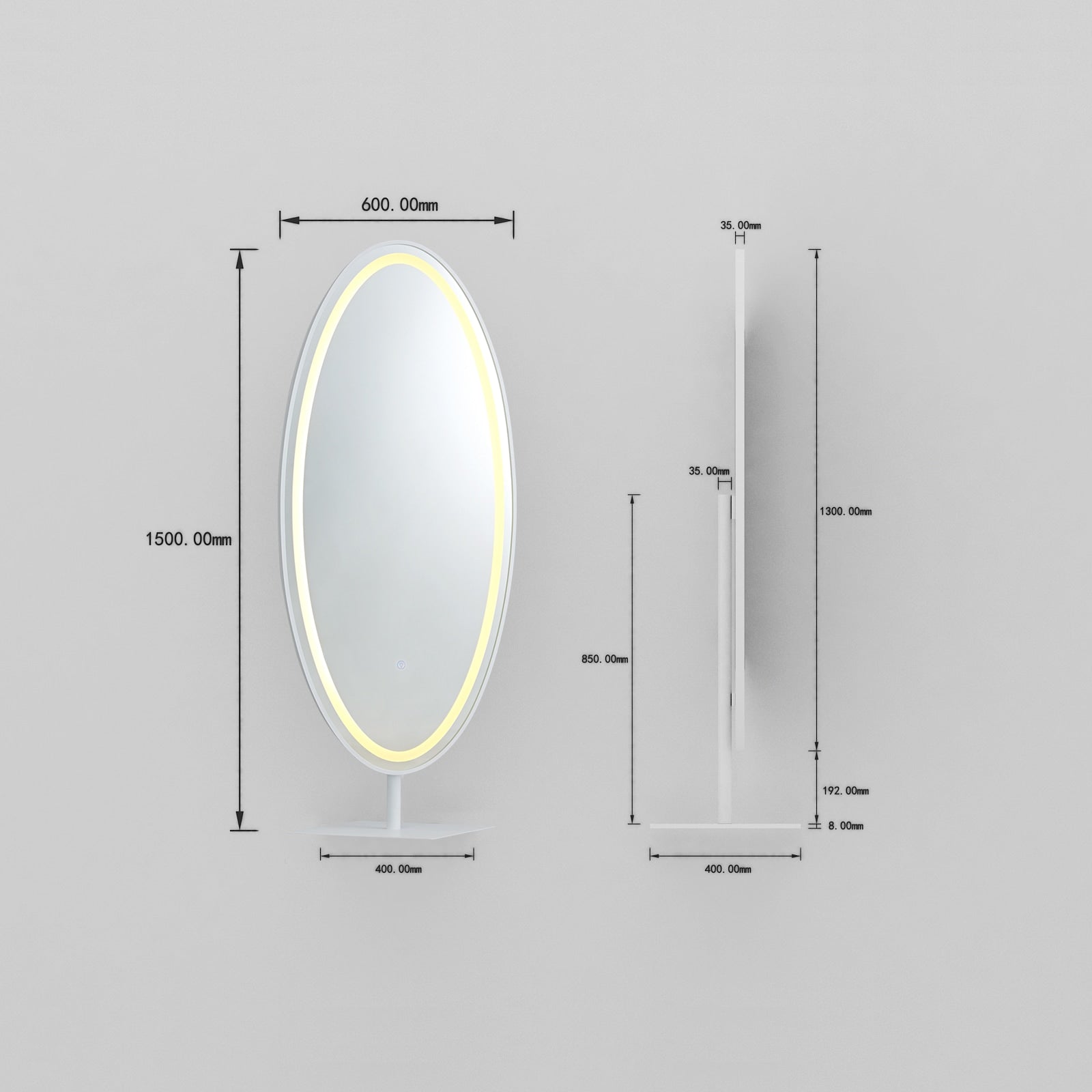 Introducing the Layla, a stylish oval mirror that adds both sound and vision to the home. This fantastic 150x60 cm mirror comes complete with colour-changing LED, Bluetooth+ speaker box and connected stand.