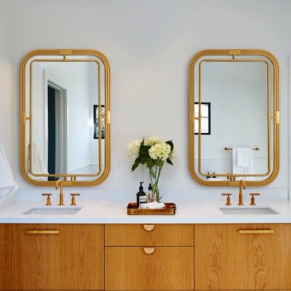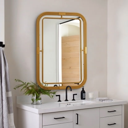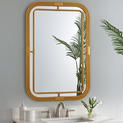 Introducing the Naomi, an exquisite rectangular mirror that adds a touch of class to any decor. This fabulous 120x80 cm mirror features an inner golden frame connected to a finely crafted exterior array of golden tones finished with clever soft edges.