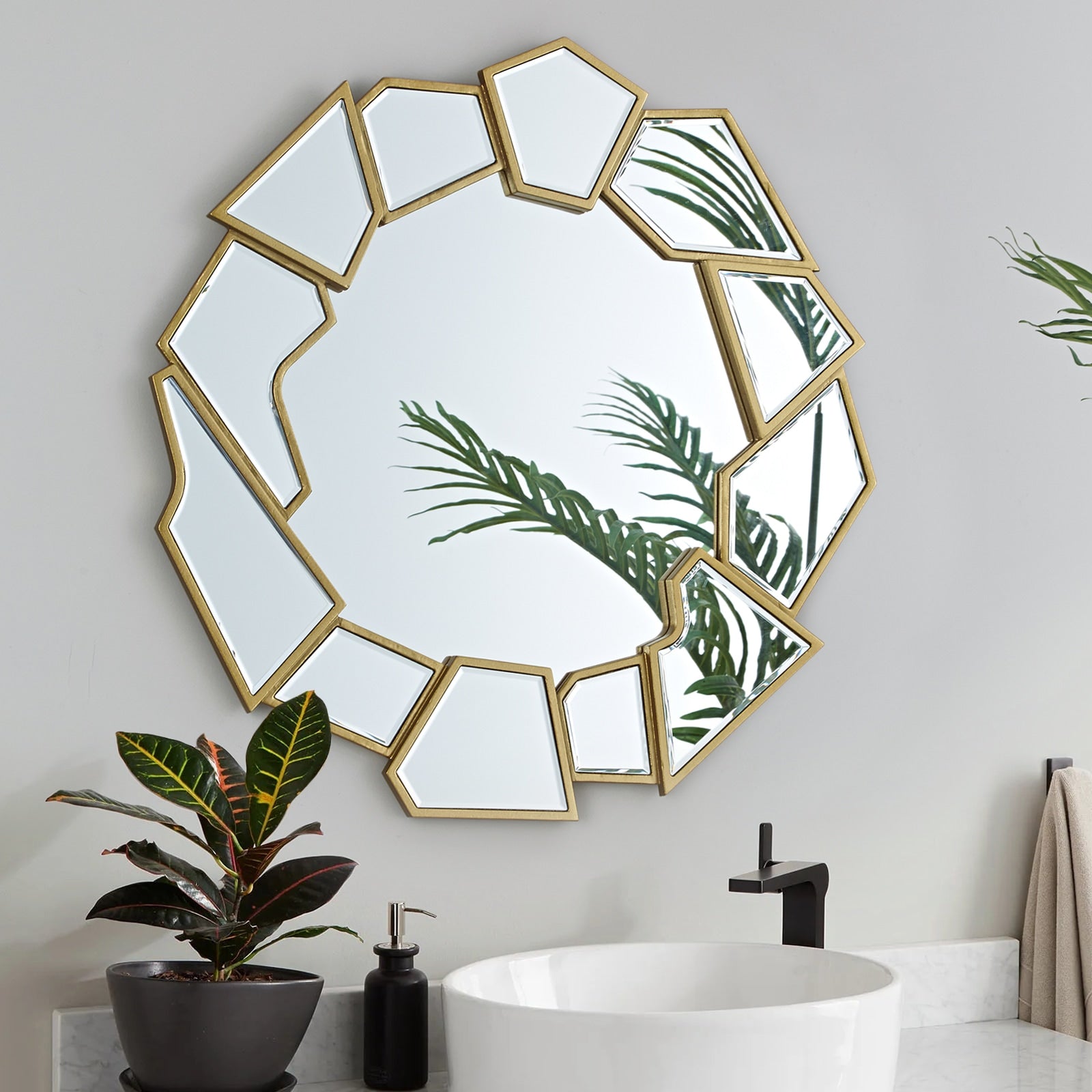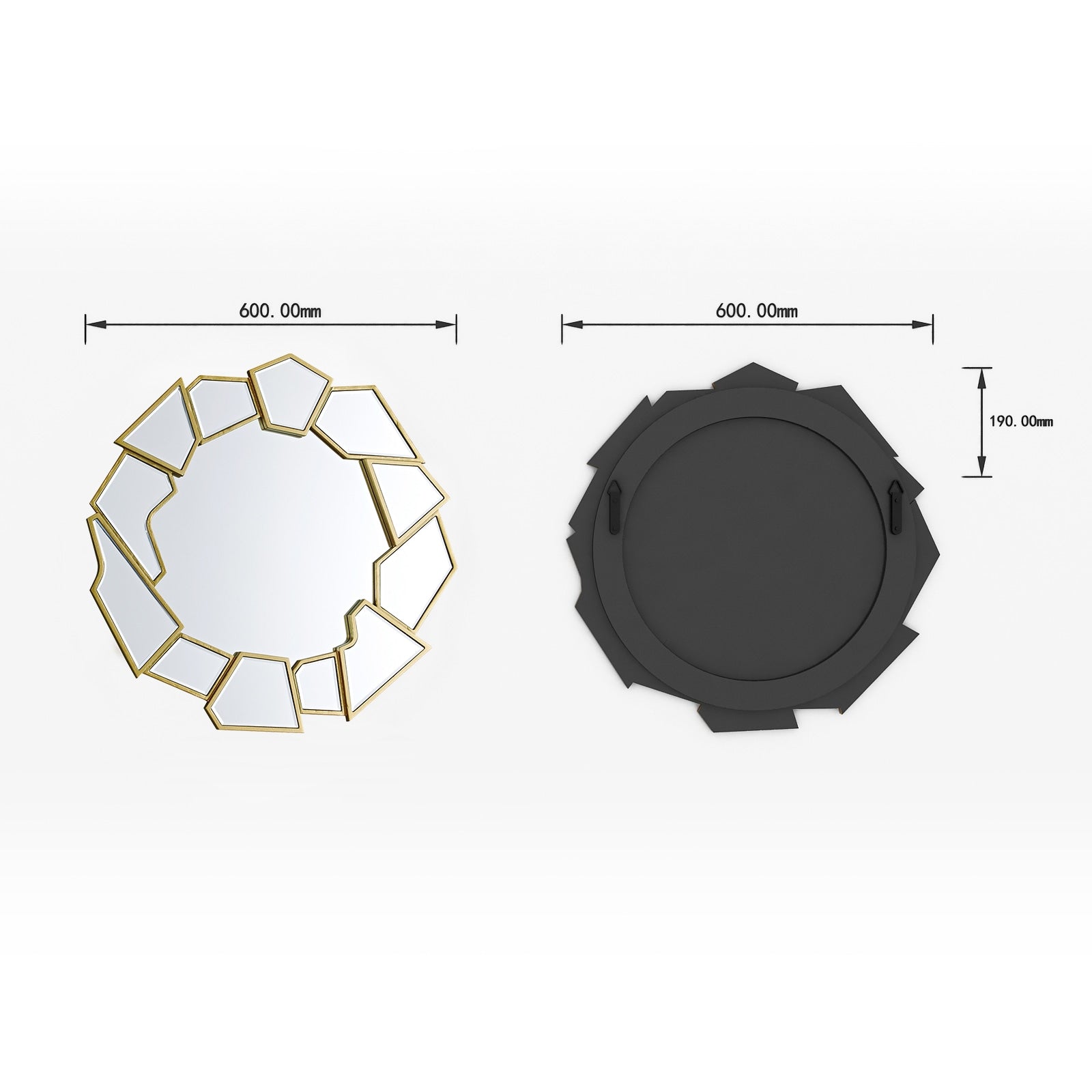 Introducing the Skylar, a stunning geometric mirror that utilises clever shaping from its perimeter sections to create a wondrous ambience. This dynamic 60x60cm mirror features gold framing on its outside perimeter pieces to make a unique centrepiece.