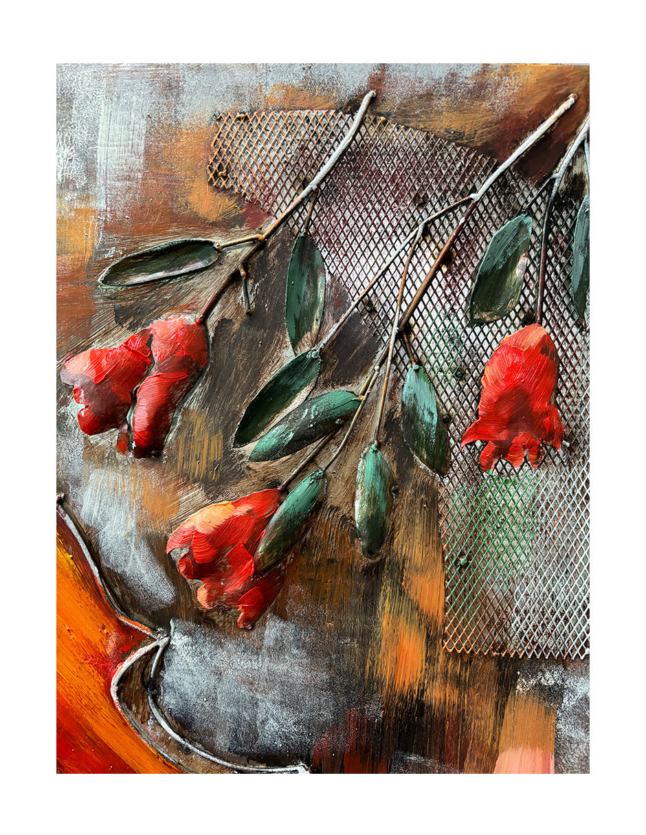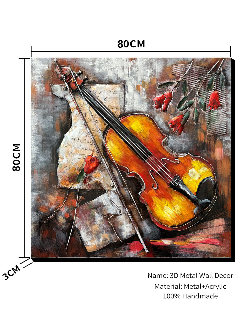 Introducing Stringed Paradise, an exquisite piece of 3D Metal and Wood Wall Decor that brings a touch of rustic charm and modern artistry to your home. This stunning 80x80 cm wall art features a musical masterpiece with an eye-catching violin and scattered roses, meticulously designed to captivate and inspire.
